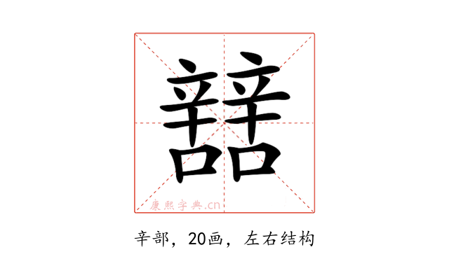 〔𨐼〕字部首是辛部,总笔画是20画。
