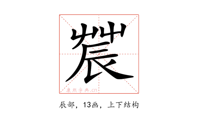 〔𨑆〕字部首是辰部,总笔画是13画。
