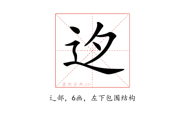 〔𨑚〕字是左下包围结构,可拆字为“辶、夕”。