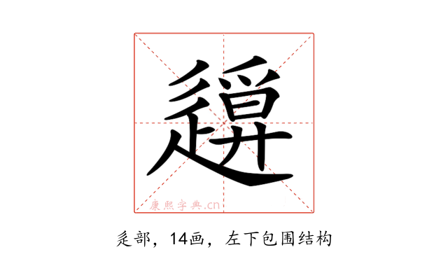 〔𨖪〕字部首是辵部,总笔画是14画。