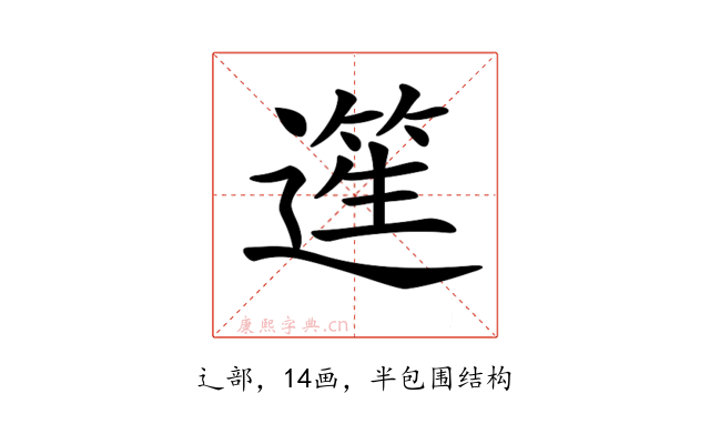 〔𨖬〕字是半包围结构,可拆字为“辶、笙”。