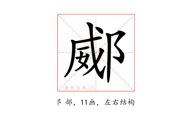 〔𨜠〕字是左右结构,可拆字为“威、阝”或“威、⻏”。