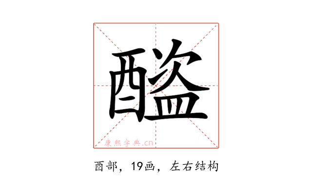 〔𨣕〕字是左右结构,可拆字为“酉、盗”或“酉、盜”。