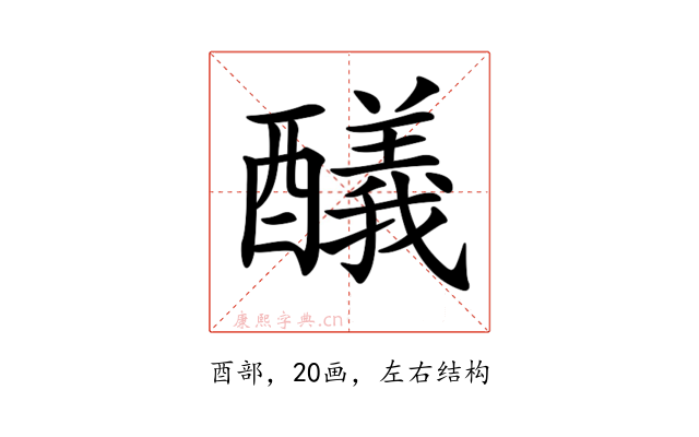 〔𨣞〕字是左右结构,可拆字为“酉、義”。