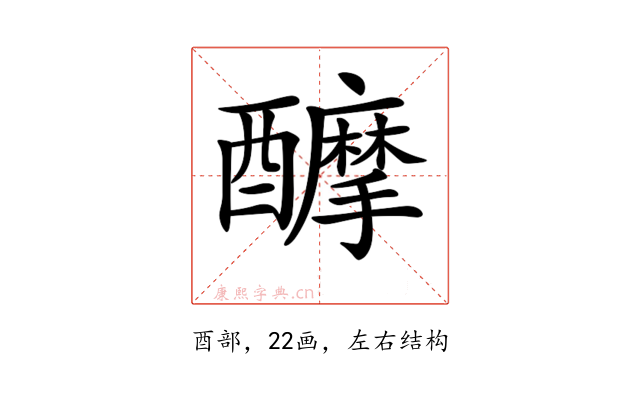 〔𨣴〕字是左右结构,可拆字为“酉、摩”。