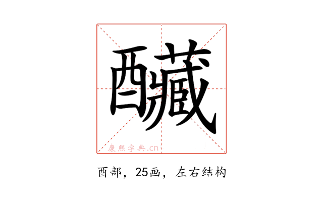 〔𨤃〕字是左右结构,可拆字为“酉、藏”。
