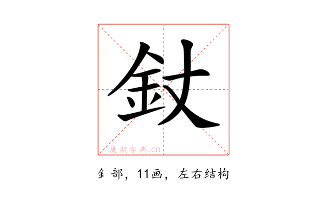 〔𨥅〕字部首是釒部,总笔画是11画。
