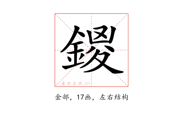 〔𨩻〕字拼音是(wǎn),部首是金部,总笔画是17画。