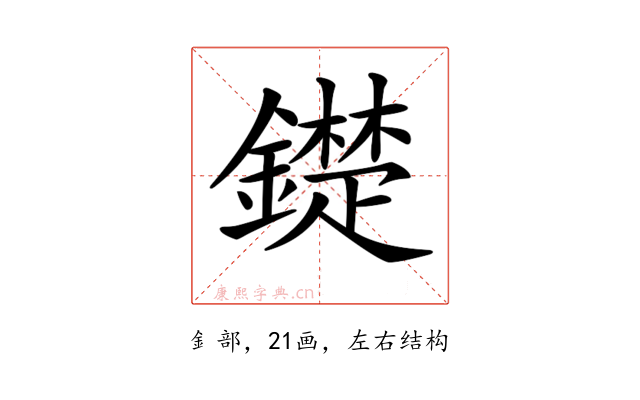 〔𨭣〕字是左右结构,可拆字为“金、楚”或“釒、楚”。