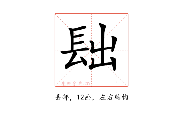 〔𨱦〕字是左右结构,可拆字为“镸、出”。