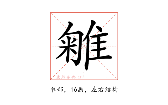 〔𨿥〕字部首是隹部,总笔画是16画。
