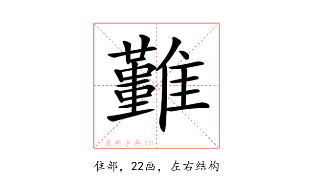 〔𩁚〕字部首是隹部,总笔画是22画。
