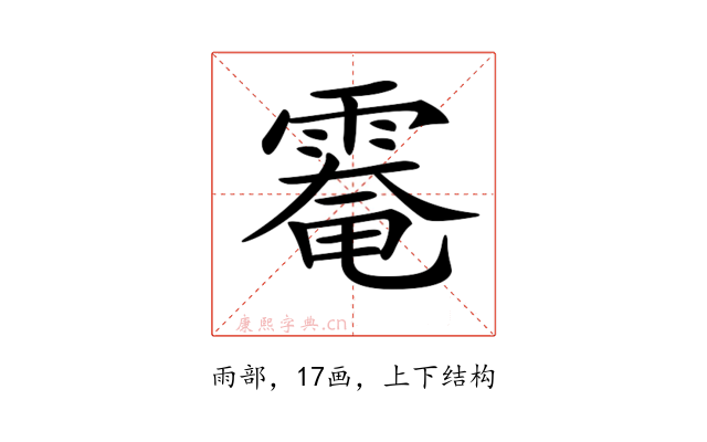 〔𩄀〕字部首是雨部,总笔画是17画。