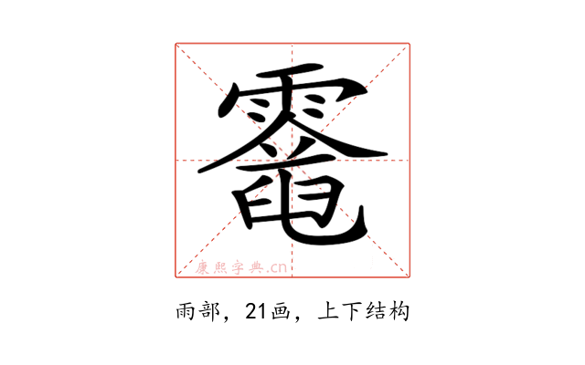 〔𩆈〕字部首是雨部,总笔画是21画。