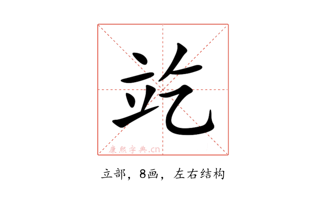〔䇄〕字是左右结构,可拆字为“立、乞”。