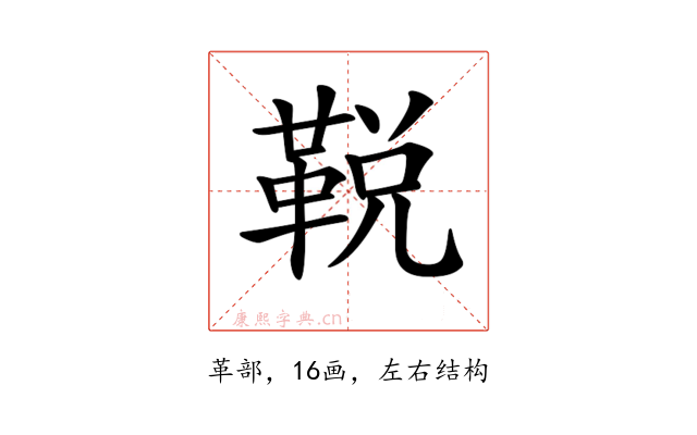纠错〔𩊭〕字拼音是(duì),部首是革部,总笔画是16画。