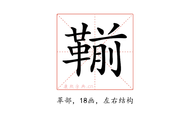 〔𩋳〕字拼音是(qián),部首是革部,总笔画是18画。