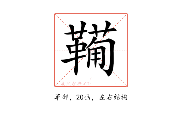 〔𩍁〕字拼音是(bèi),部首是革部,总笔画是20画。
