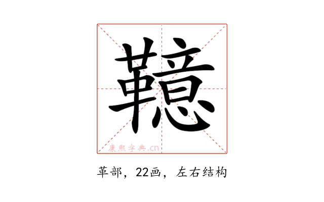 纠错〔𩍖〕字拼音是(yì),部首是革部,总笔画是22画。