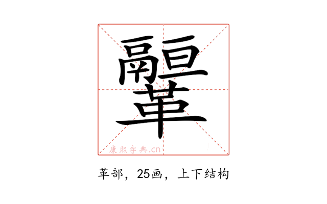 〔𩍻〕字是上下结构,可拆字为“𩰵、革”。