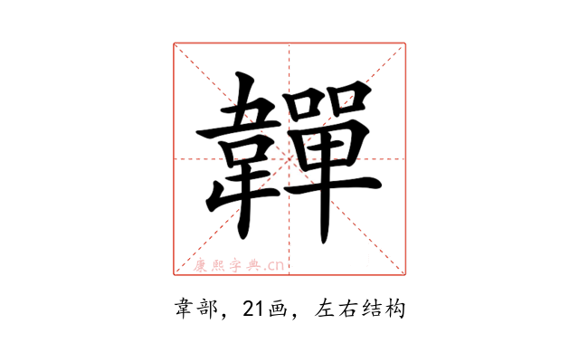〔𩏥〕字拼音是(dān),部首是韋部,总笔画是21画。