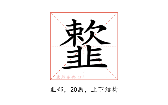 〔𩐋〕字部首是韭部,总笔画是20画。