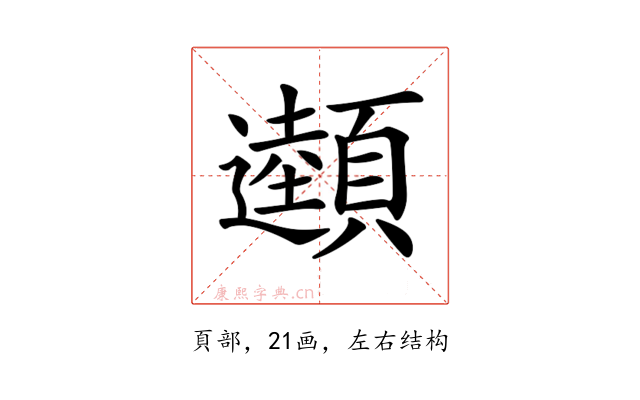 〔𩕜〕字拼音是(kuí),部首是頁部,总笔画是21画。