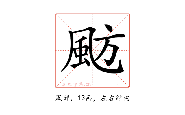 〔𩖫〕字部首是風部,总笔画是13画。
