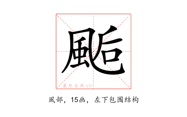 〔𩗇〕字是左下包围结构,可拆字为“風、后”。