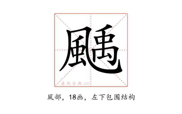 〔𩘉〕字是左下包围结构,可拆字为“風、禹”。