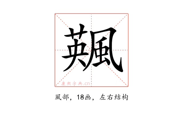 〔𩘕〕字是左右结构,可拆字为“英、風”。