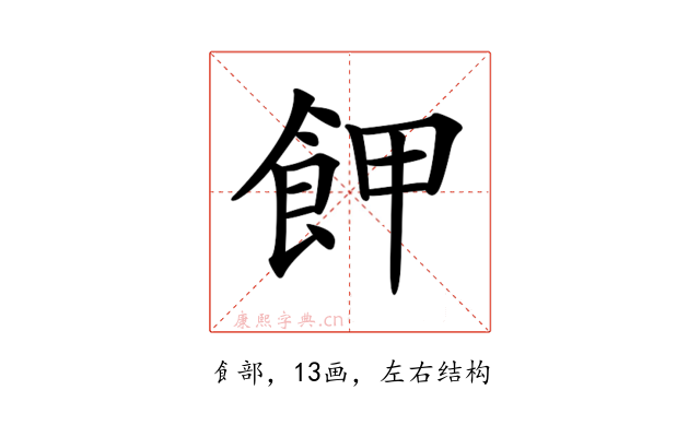 〔𩚲〕字拼音是(jiá),部首是飠部,总笔画是13画。