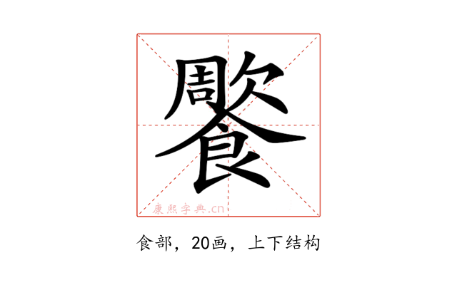 〔𩞺〕字是上下结构,可拆字为“周、欠、食”。