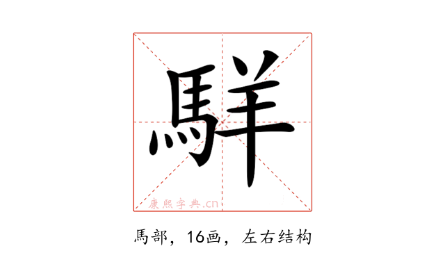 纠错〔𩣆〕字部首是馬部,总笔画是16画。