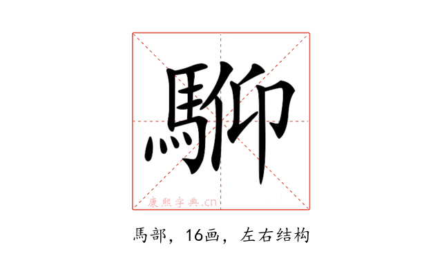 〔𩣍〕字部首是馬部,总笔画是16画。