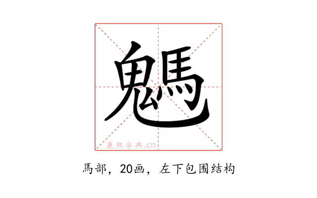〔𩥢〕字是左下包围结构,可拆字为“鬼、馬”。