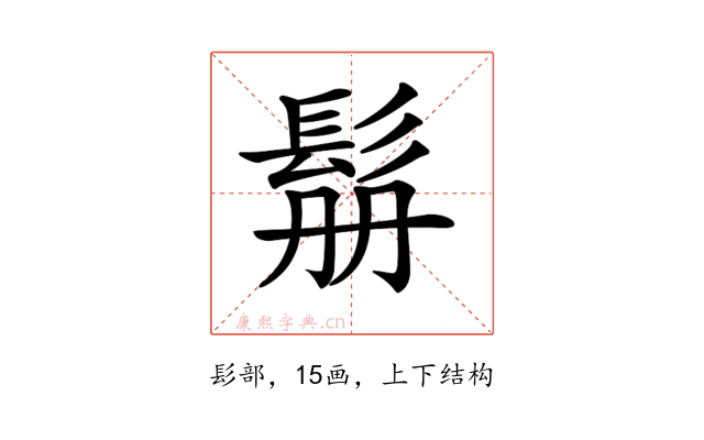 〔𩬥〕字是上下结构,可拆字为“髟、册”。