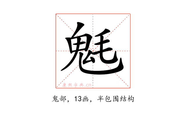 〔𩲊〕字是半包围结构,可拆字为“鬼、毛”。