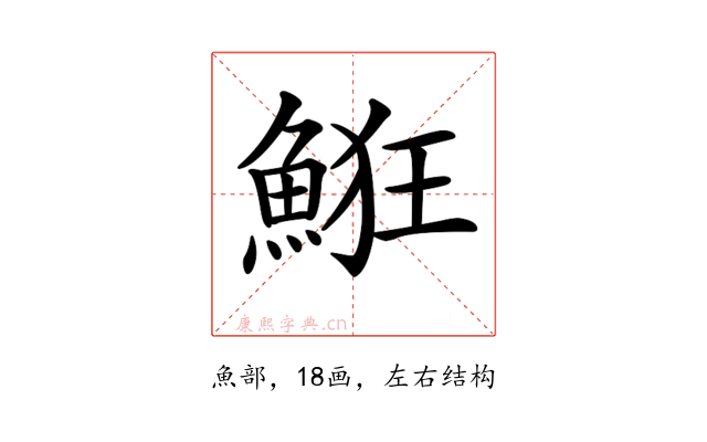 〔𩷗〕字拼音是(kuáng),部首是魚部,总笔画是18画。