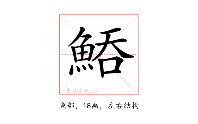 〔𩷵〕字是左右结构,可拆字为“魚、吞”。