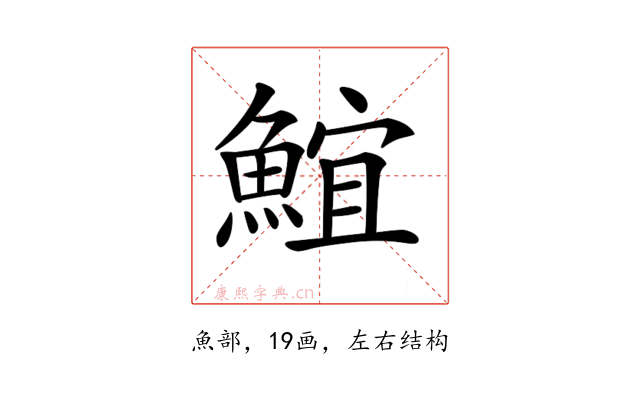 〔𩸨〕字是左右结构,可拆字为“魚、宜”。