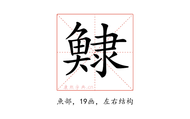 〔𩸺〕字是左右结构,可拆字为“魚、隶”或“𩵋、隶”。