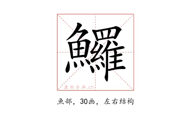 〔𩽰〕字拼音是(luó),部首是魚部,总笔画是30画。