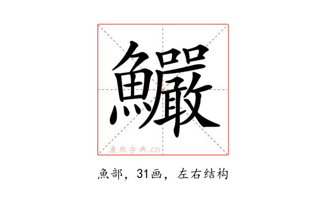 〔𩽴〕字是左右结构,可拆字为“魚、嚴”。