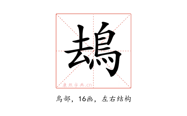 〔𩿹〕字是左右结构,可拆字为“去、鳥”。