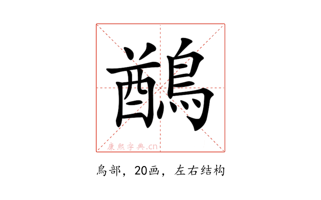 〔𪃬〕字是左右结构,可拆字为“酋、鳥”。