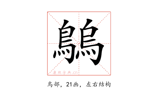 〔𪄝〕字拼音是(wū),部首是鳥部,总笔画是21画。
