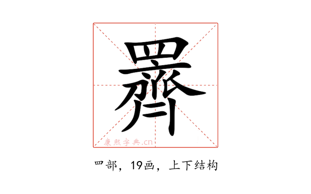 〔䍤〕字是上下结构,可拆字为“罒、齊”。