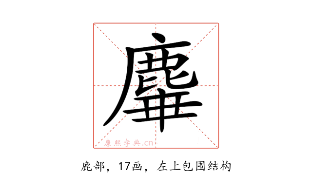 〔𪊩〕字是左上包围结构,可拆字为“鹿、十、龷”。