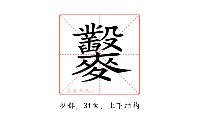 〔𪎇〕字拼音是(zuó),部首是麥部,总笔画是31画。